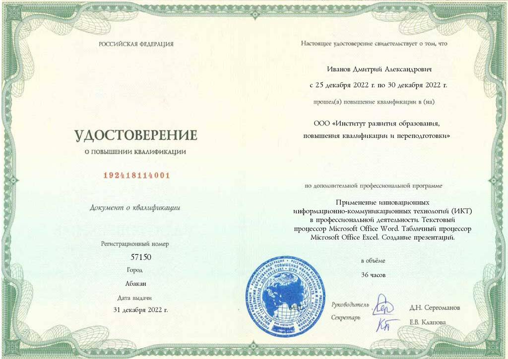 Применение инновационных информационно-коммуникационных технологий (ИКТ) в профессиональной деятельности. Текстовый процессор Microsoft Office Word. Табличный процессор Microsoft Office Excel. Создание презентаций.